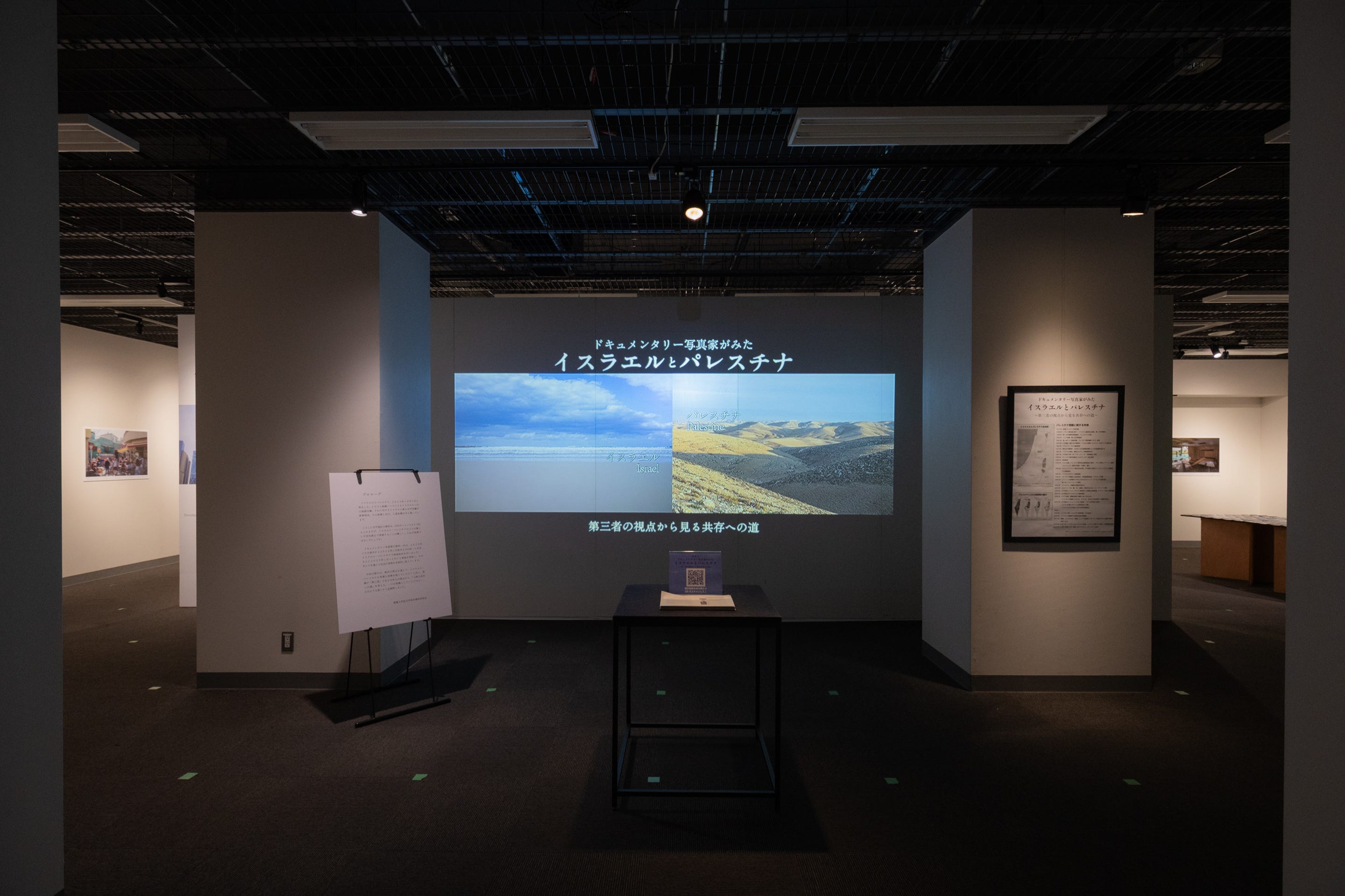 企画展示室の入口では上記の映像を空間演出として流しています。イスラエルとパレスチナ双方の写真が同時に現れた後、左右にスライドしていくエフェクトがかけられており、ここでも境界や分断が表現されています。